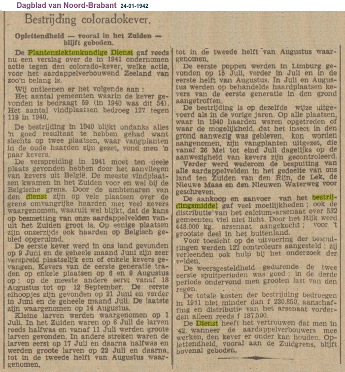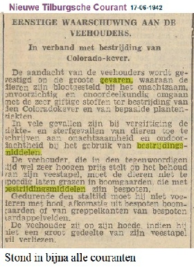Gezien de berichtgeving in de diverse kranten waren dit vooral de vraat van rupsen van de Colloradokever op de aardappelplant en de Bruine Rat - overbrengers van ziektes en plunderaar van voedsel van zowel vee als van de mensen.....ook al waarschuwing voor giftigheid van de ‘middelen’.