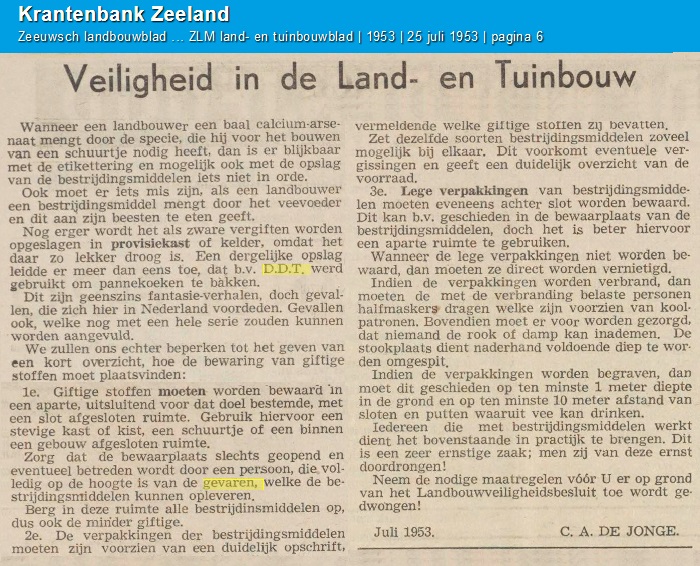 Iedereen die met bestrijdingsmiddelen werkt dient het bovenstaande in practijk te brengen. Dit is een zeer ernstige zaak; men zij van deze ernst, doordrongen!