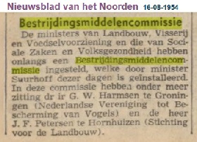 Ziet men vaak dat vee op percelen grenzend aan dat waar met een bestrijdingsmiddelen wordt gewerkt stuifwolken gif inademt, het gif heeft ook een schadelijke uitwerking op de wildstand. Dit is des te ernstiger omdat het biologisch evenwicht in de natuur met grote mate van waarschijnlijkheid verstoord wordt. Dit kan van ernstige invloed zijn. Men kent de grote rol die de insecten in de steeds hernieuwde groei van de gewassen spelen. Dit herstel van het biologisch evenwicht is een der belangrijke onderwerpen die de beide thans werkzame commissies op haar programma hebben staan.