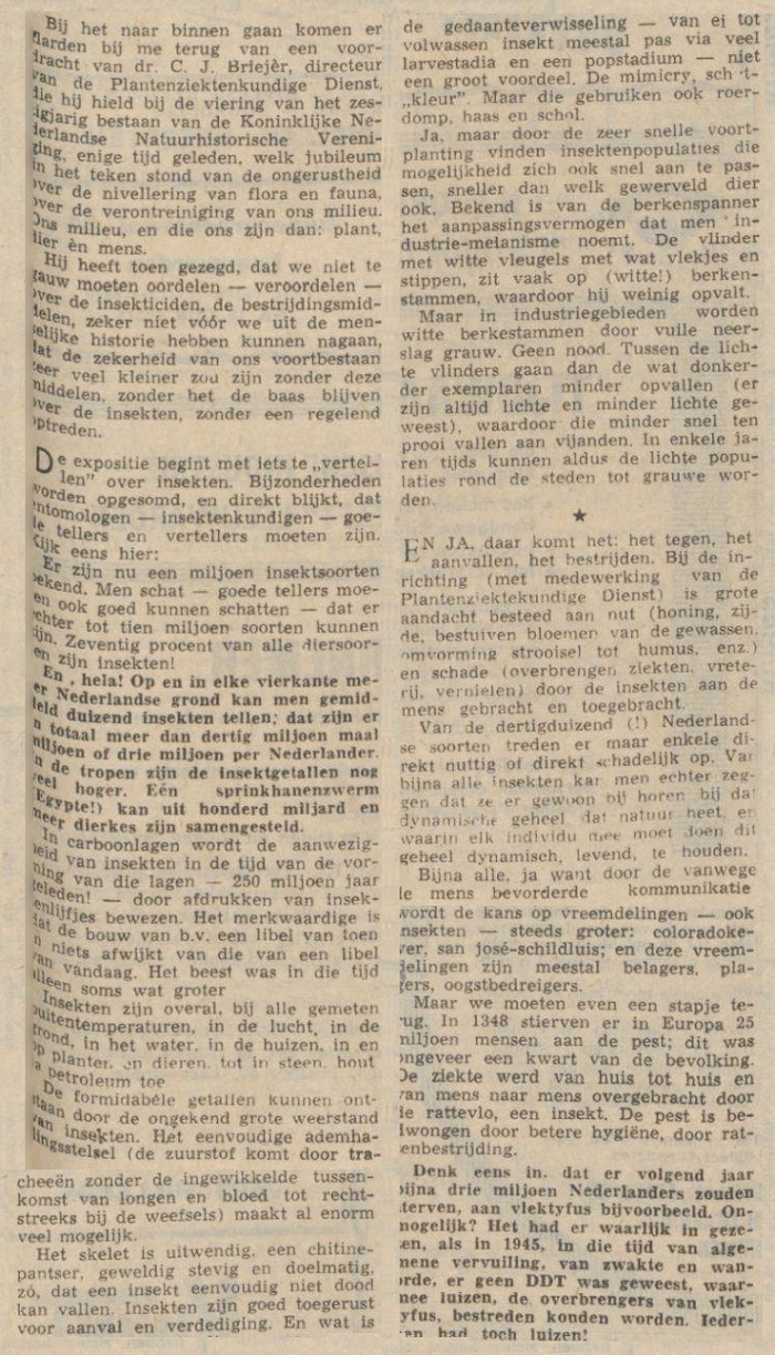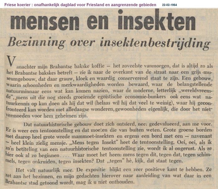 "mensen en insekten". "Friese koerier : onafhankelijk dagblad voor Friesland en aangrenzende gebieden". Heerenveen, 22-02-1964. Geraadpleegd op Delpher op 13-09-2019, https://resolver.kb.nl/resolve?urn=ddd:010689459:mpeg21:a0232