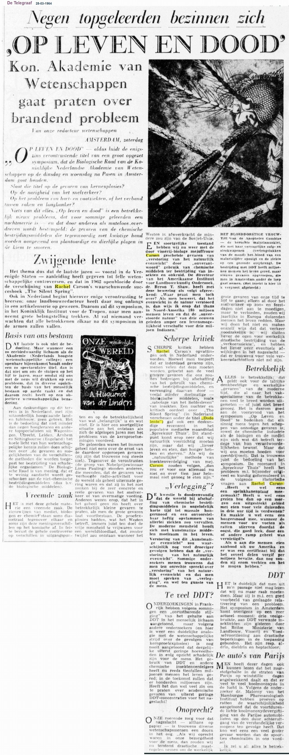 Het thema dus dat de laatste jaren — vooral in de Verenigde Staten — aanleiding heeft gegeven tot felle wetenschappelijke controversen, en dat in 1962 openbloeide door de verschijning van Rachel Carson's waarschuwende succesboek „The Silent Spring”.