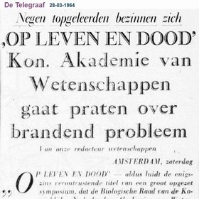 Dat laatste is ook niet de bedoeling. Maar wanneer een zo eerbiedwaardig lichaam als de Akademie (Nederlands hoogste wetenschappelijke college) een openbare bijeenkomst houdt onder een zo spectaculaire titel, dan is dat niet om ons de stuipen op het lijf te jagen, maar omdat zij ons met de neus wil drukken op een probleem, dat in diverse opzichten de basis van het menselijk bestaan op aarde raakt en dat daarom recht heeft op een objectieve wetenschappelijke benadering.