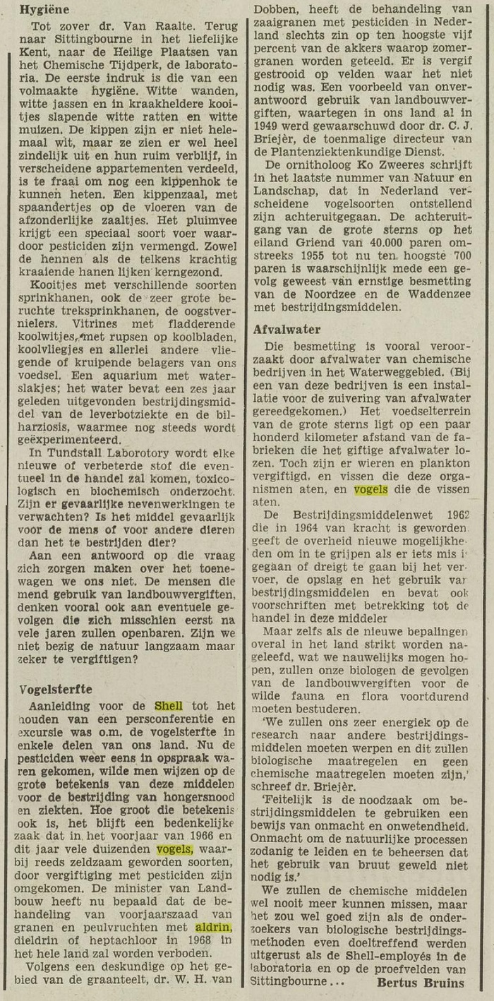 "Vogelsterfte". "Het vrije volk : democratisch-socialistisch dagblad". Rotterdam, 1967/08/05 00:00:00, p. 4. Geraadpleegd op Delpher op 07-10-2019, http://resolver.kb.nl/resolve?urn=ddd:010956381:mpeg21:p024