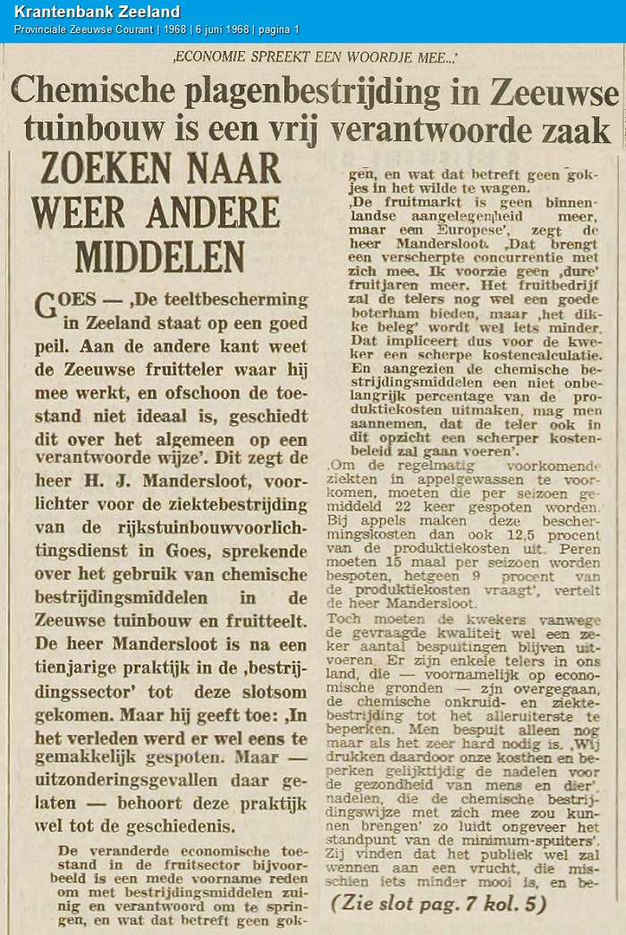 Chemische plagenbestrijding in Zeeuwse tuinbouw