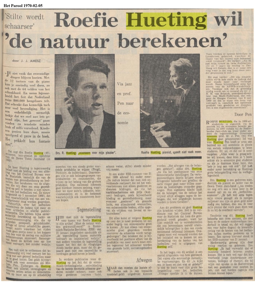 Drs. R. Hueting: „econoom voor mijn plezier".
