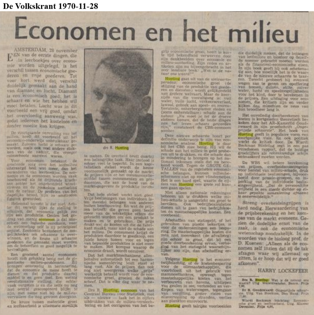 ECONOMIE Roef ie Hueting wil 'de natuur berekenen' 'Stilte wordt schaarser' door J.J. AMESZ. "Het Parool". Amsterdam, 05-02-1970. Geraadpleegd op Delpher op 24-08-2025, https://resolver.kb.nl/resolve?urn=ABCDDD:010837694:mpeg21:p033
