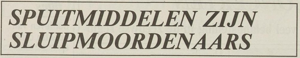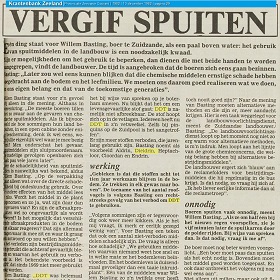 Over de schadelijkheid van spuitmiddelen is nauwelijks wat bekend, aldus Willem Basting. „Op de verpakking staat alleen wat over de directe schadelijkheid bij ondeskundig gebruik. Over de andere effecten van het middel lees je niks, Wordt het middel in de plant opgenomen en zo ja, wat zijn daar dan de gevaren van? En zijn de afbraakprodukten wel zo ongevaarlijk als wordt beweerd? Is het mogelijk dat verschillende afbraakprodukten in de bodem met elkaar reageren? Dat zijn allemaal vragen waar ik mee zit en waar ik graag een antwoord op zou willen hebben”.