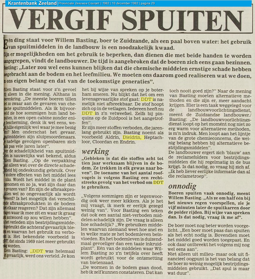 “Er zijn meer stoffen verboden, die jaren lang gebruikt zijn. Basting noemt als voorbeeld Aldrin, Dieldrin, Heptachloor, Cloordan en Endrin.