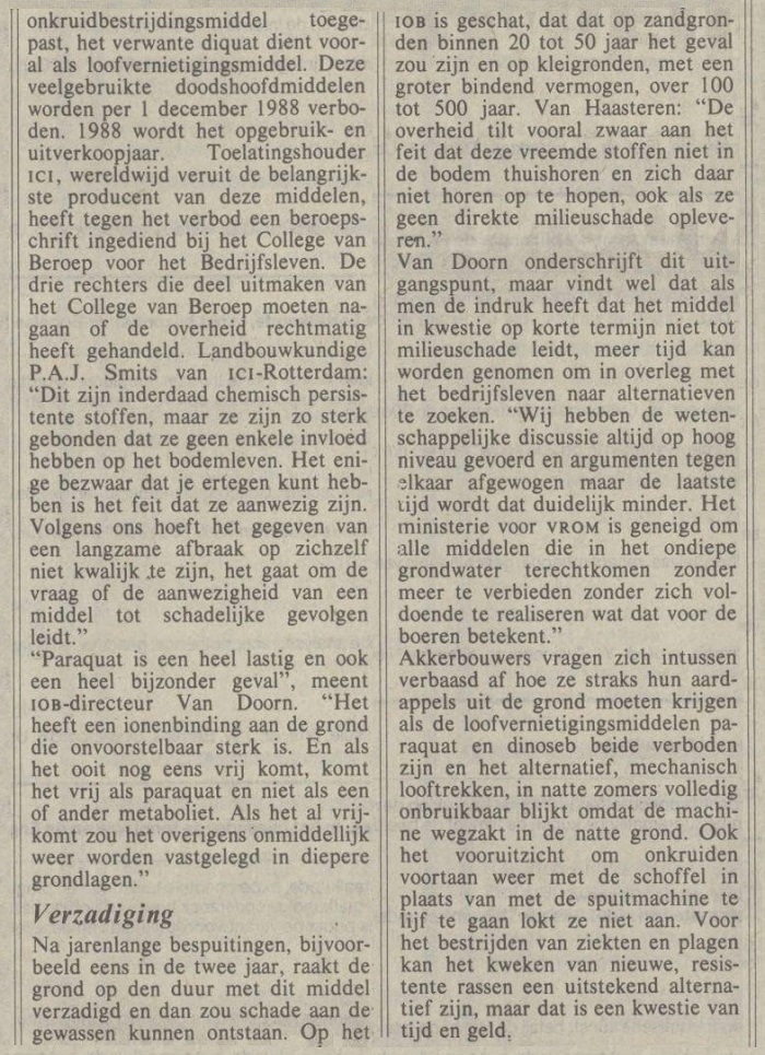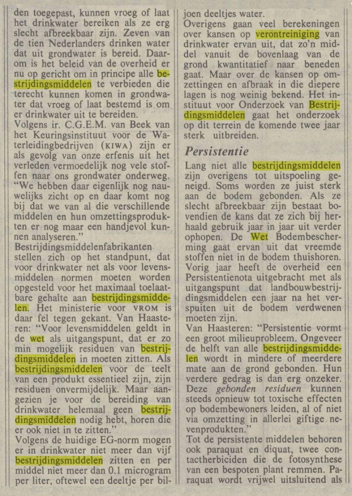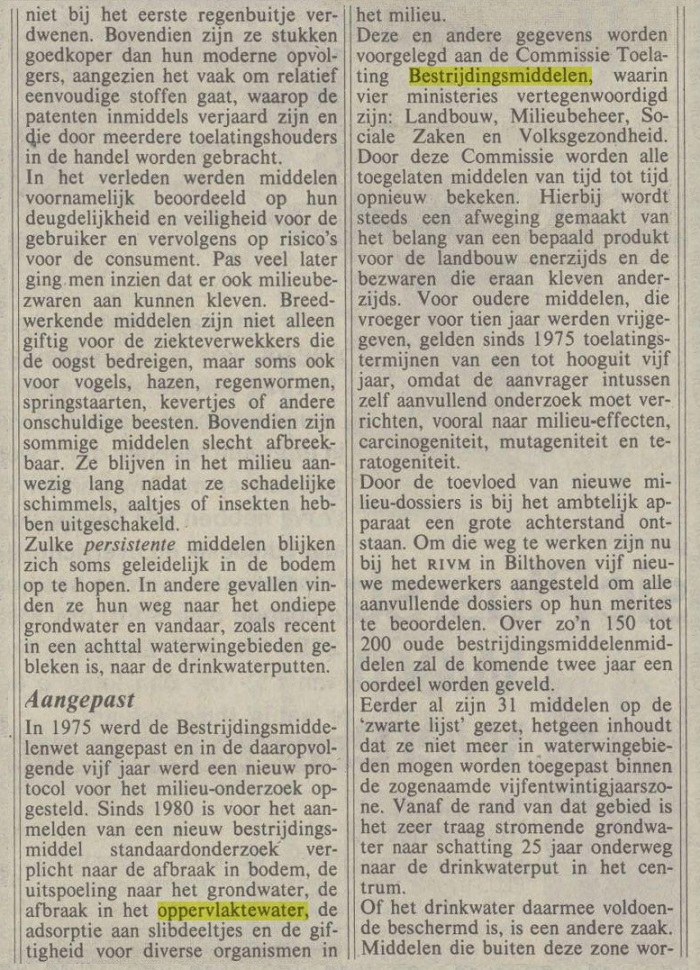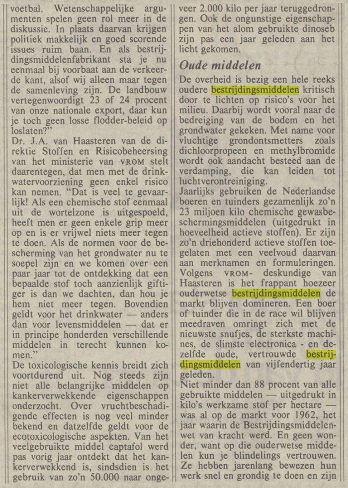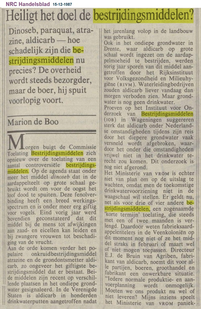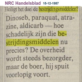 "Heiligt het doel de bestrijdingsmiddelen?". "NRC Handelsblad". Rotterdam, 15-12-1987. Geraadpleegd op Delpher op 04-07-2019,