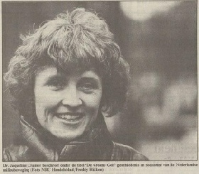 „Paradoxaal genoeg”, zegt ze thuis in Amsterdam, „zou de recente omslag in de richting van een veel milieubewuster denken wel eens het einde van de milieubeweging kunnen betekenen. De kans is immers niet denkbeeldig dat ze nu zodanig door het politieke establishment wordt ingekapseld, dat ze haar oorspronkelijke activistische élan verliest.