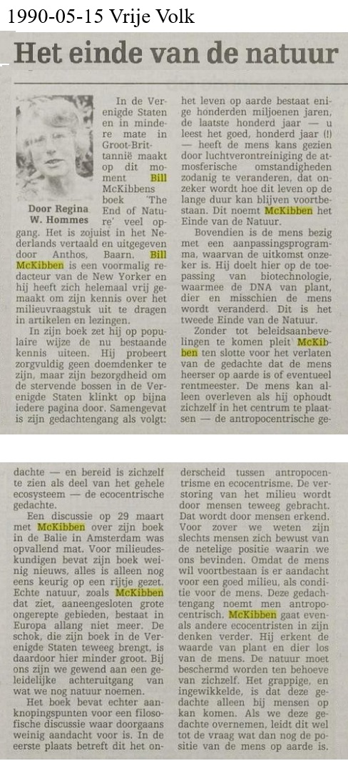 Het einede van de natuur. "Het vrije volk : democratisch-socialistisch dagblad". Rotterdam, 15-05-1990, p. 9. Geraadpleegd op Delpher op 22-08-2025, https://resolver.kb.nl/resolve?urn=ddd:010963537:mpeg21:p009