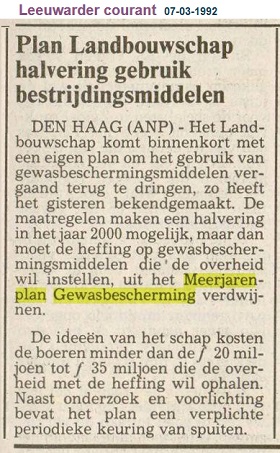 Volgens het Meerjarenplan Gewasbescherming, dat in augustus 1990 verscheen, moet in het jaar 2000 het verbruik met minstens de helft zijn verminderd, terwijl de belasting van het milieu met vijftig tot negentig procent moet zijn afgenomen.