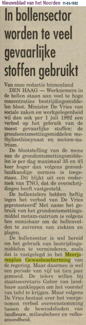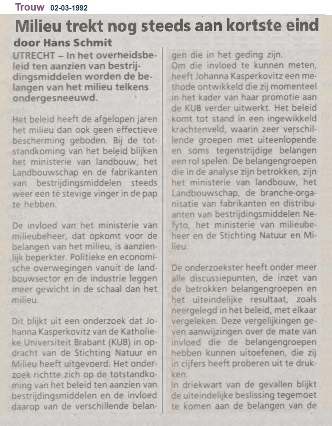 BRON delpher: Trouw 1992-03-02 ook tekst in MAP