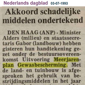 "Akkoord schadelijke middelen ondertekend". "Nederlands dagblad : gereformeerd gezinsblad / hoofdred. P. Jongeling ... [et al.]". Amersfoort, 03-07-1993. Geraadpleegd op Delpher op 28-06-2019, https://resolver.kb.nl/resolve?urn=ddd:010628627:mpeg21:a0220