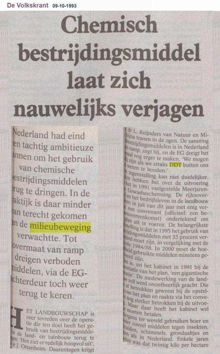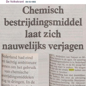 "WETENSCHAP Chemisch bestrijdingsmiddel laat zich nauwelijks verjagen". "De Volkskrant". 's-Hertogenbosch, 09-10-1993. Geraadpleegd op Delpher op 28-06-2019, https://resolver.kb.nl/resolve?urn=ABCDDD:010866824:mpeg21:a0772